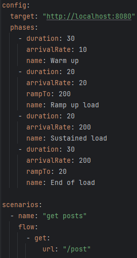 - End of load: 30초 동안 200개의 요청에서 시작하여 20개의 요청으로 줄임